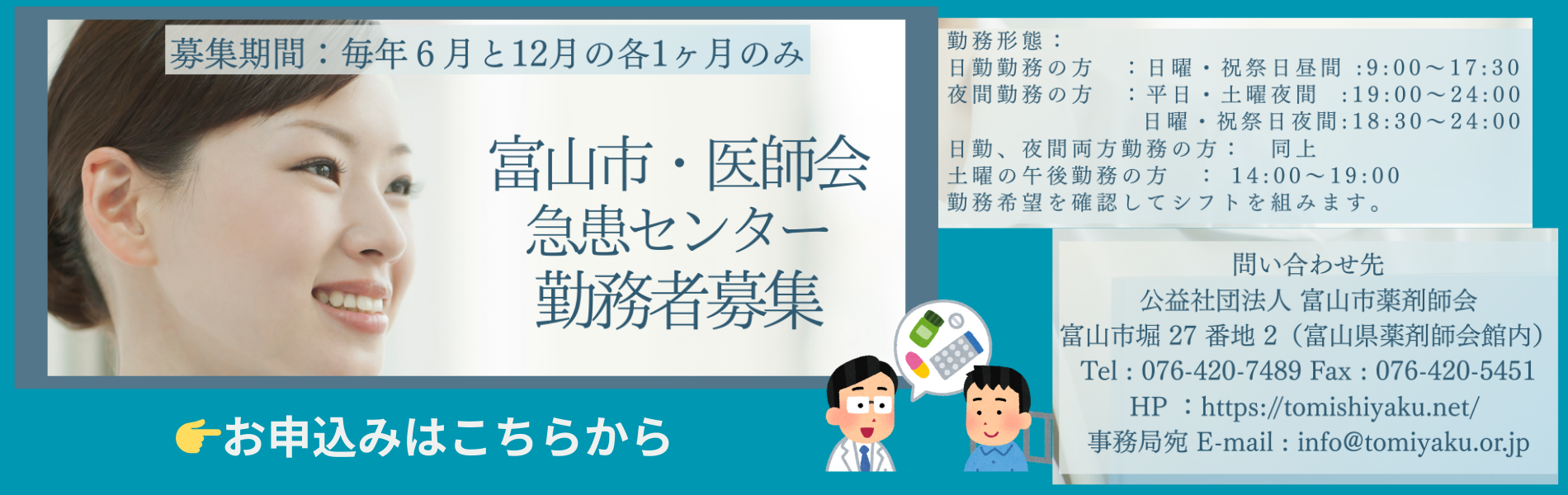 富山市薬剤師会は富山市内に勤務あるいは居住している薬剤師で組織されています。