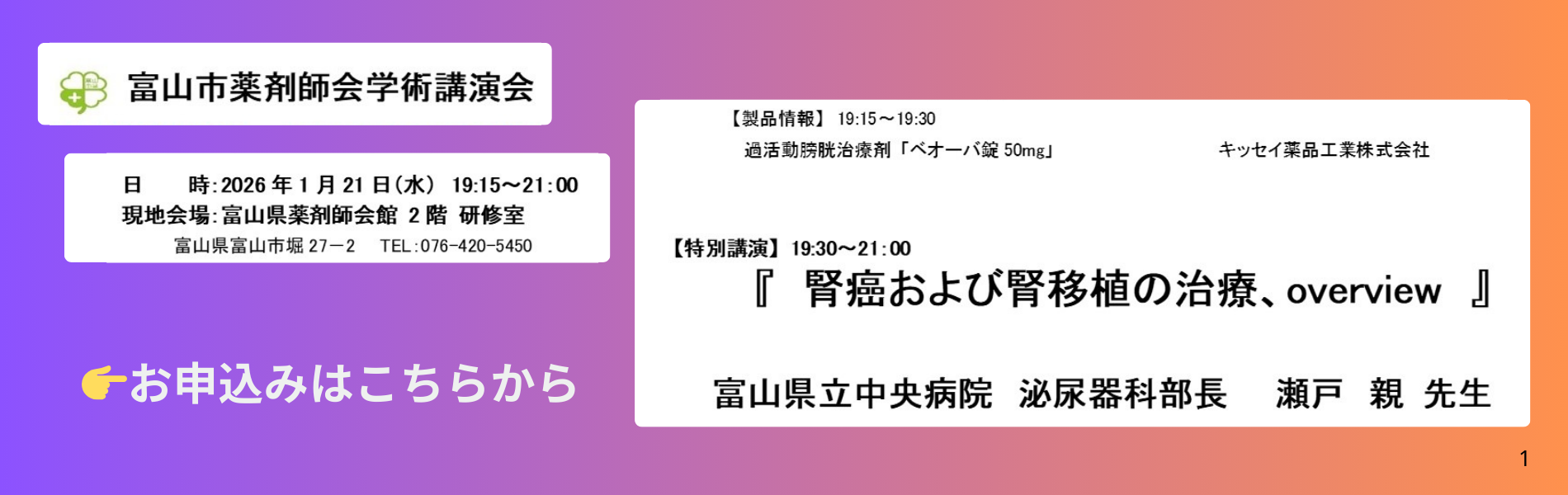 【研修会名】 令和6年度在宅医療推進訪問薬局支援事業富山地区在宅アドバンスト研修会 【寄稿者名】 ハート薬局 天正寺店 古澤 華代 【所属】 富山市薬剤師会在宅医療委員会 【企画背景】 24年度診療報酬改定より、地域支援 […]